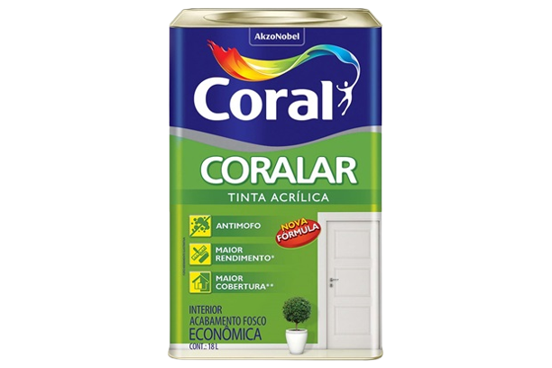 Coralar é uma tinta acrílica para quem deseja economia com qualidade. Sua fórmula permite excelente cobertura e rendimento*, além de ser antimofo. Indicado para superfícies de alvenaria, gesso e blocos de concreto em ambientes internos. Rende até 90 m² acabados por embalagem de 18L.